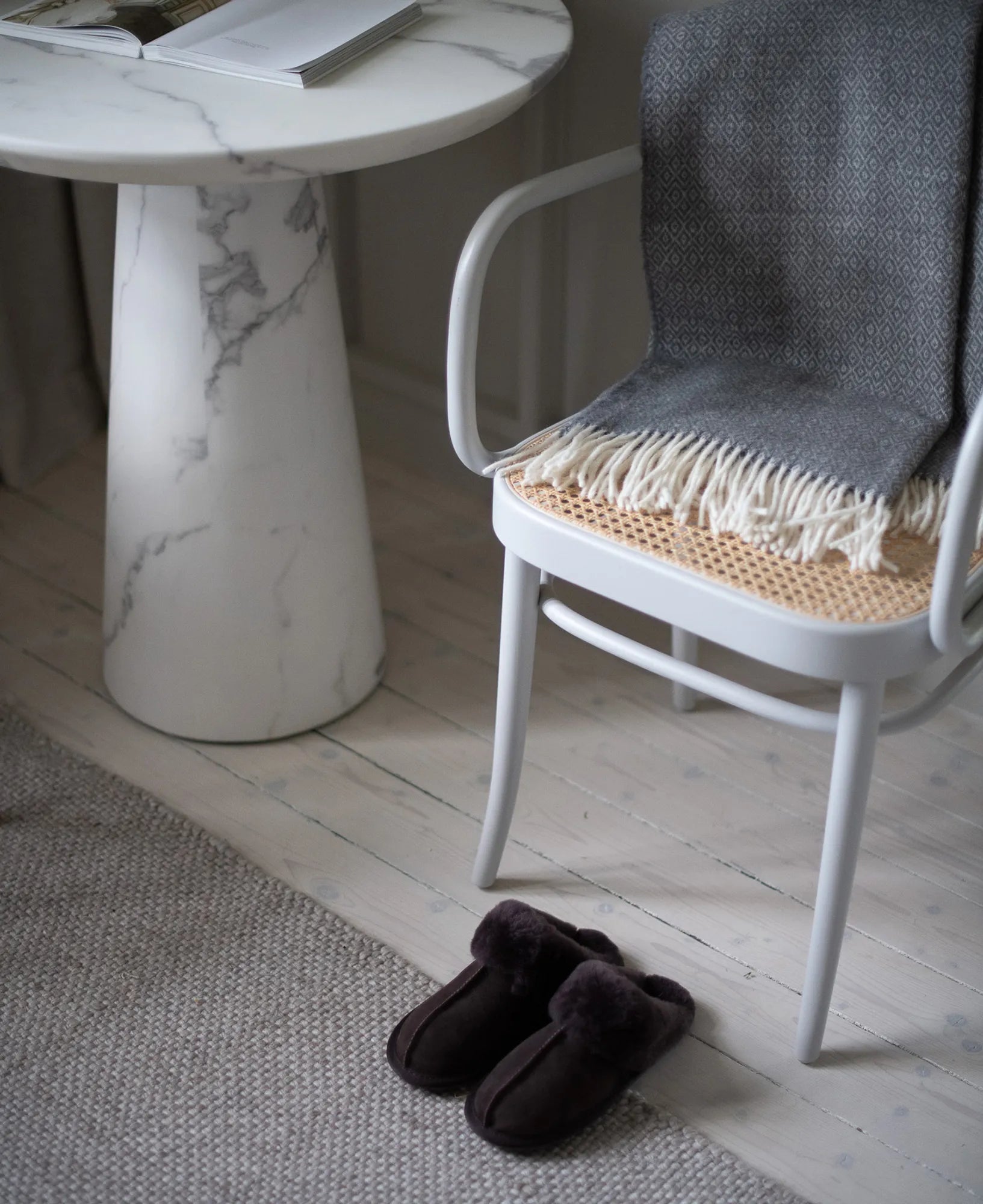Fårskinnstofflor från Ylleverket är en varm och skön innetoffel i slip in-modell. Toffeln har en ovandel i mocka och fårskinnsimitation inuti, som värmer och andas. Textilkant i matchande färg runt sulkanten. Sviktande sula med låg vikt och räfflad yttersula som tål en tur till brevlådan. Sulans höjd ca 1 cm.