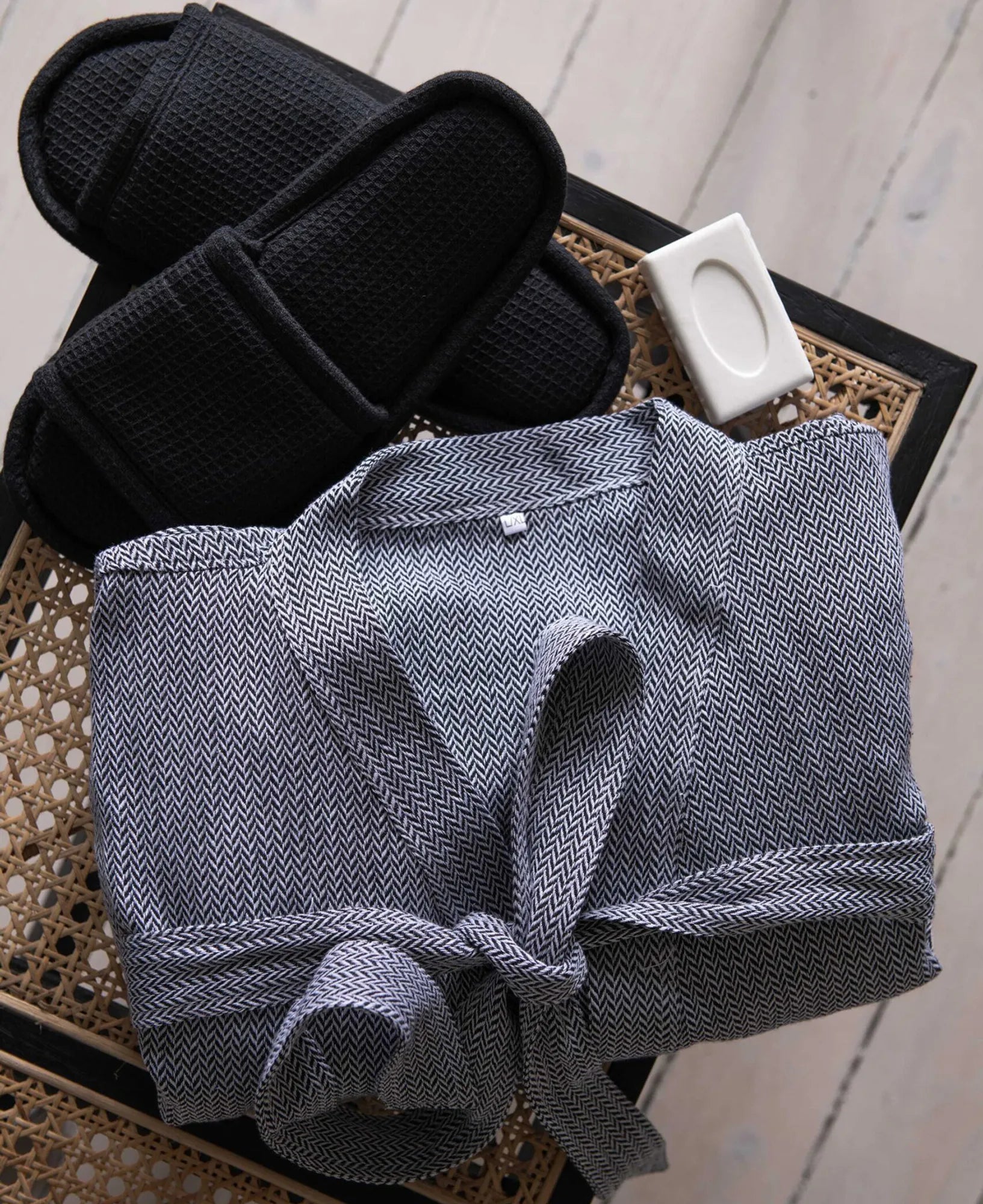 Hamam morgonrock med toffla från Ylleverket - Svart