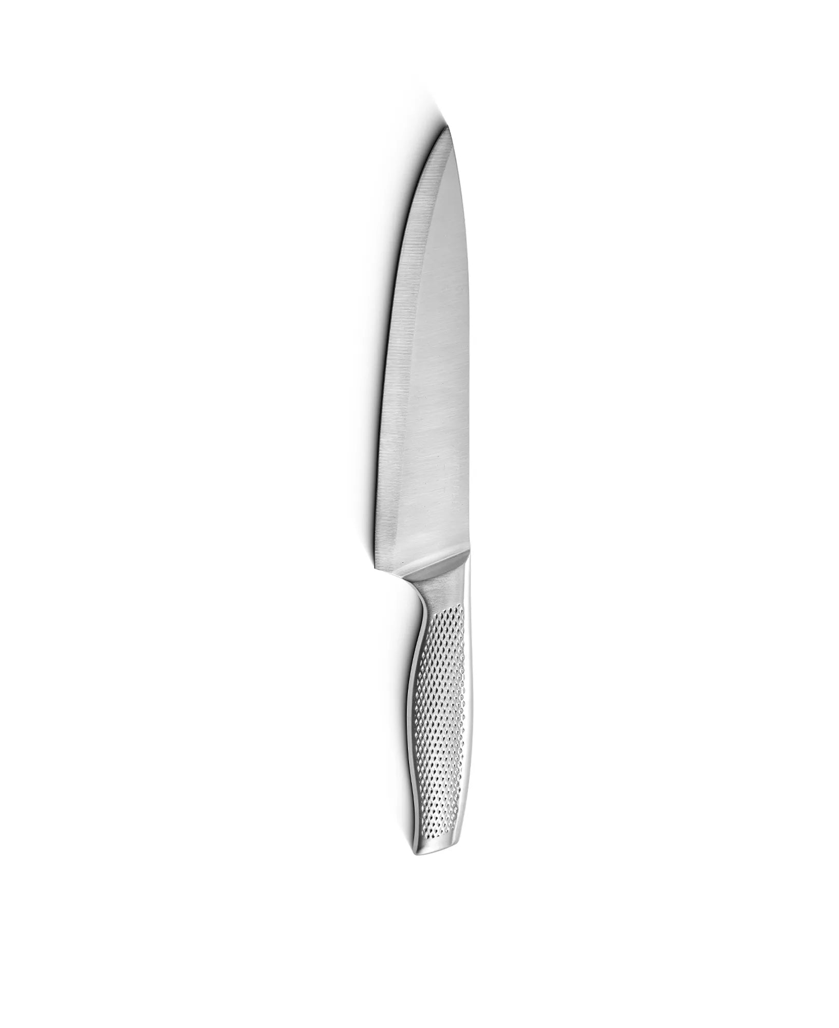• Kockkniv 20cm: - Bladtjocklek: 2,0mm - Material: Rostfritt stål blad med ett ergonomiskt handtag i rostfritt stål. - Användning: Denna mångsidiga kockkniv är idealisk för allt från att hacka grönsaker till att skära kött, och erbjuder precisionsskärning med varje rörelse.