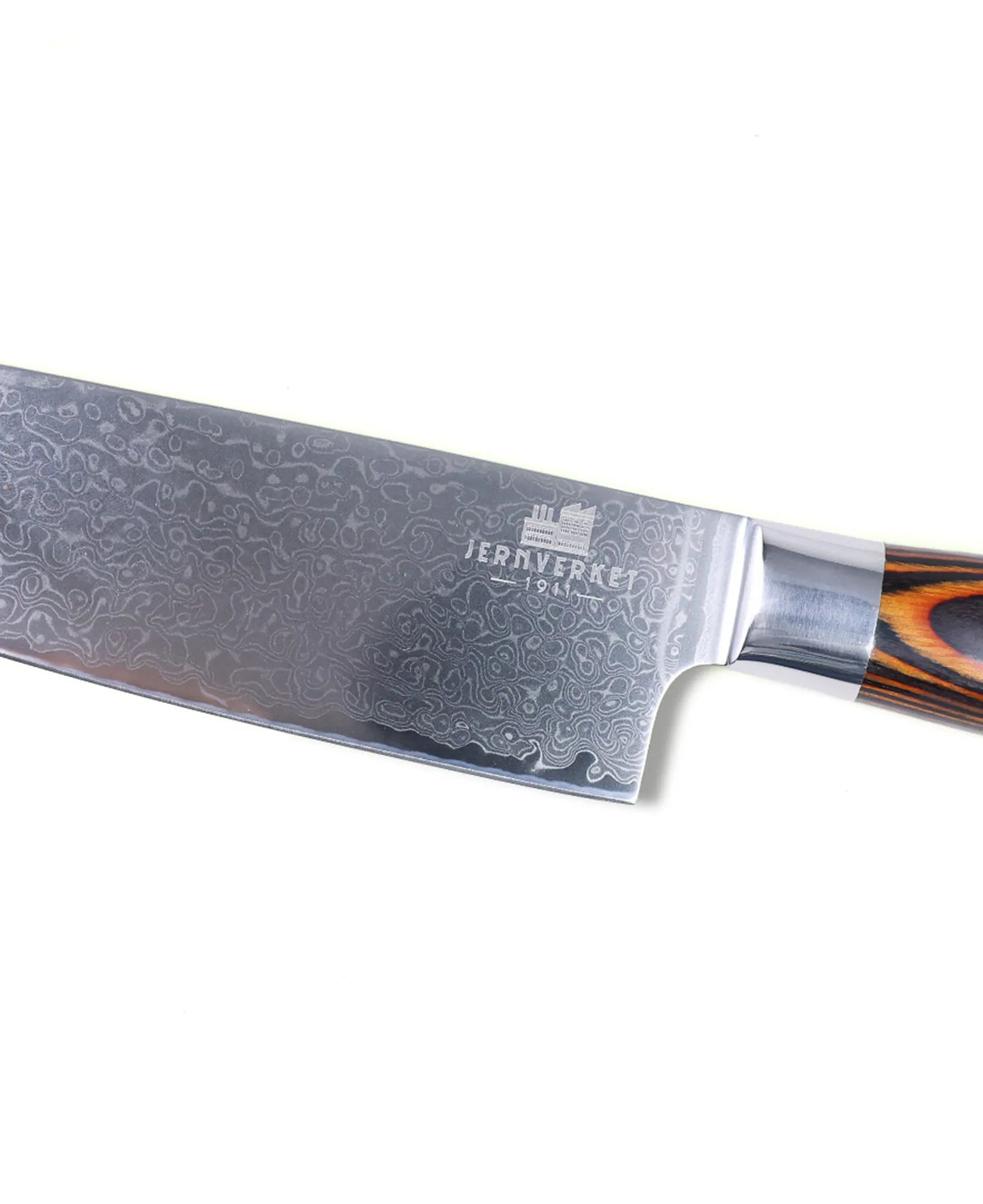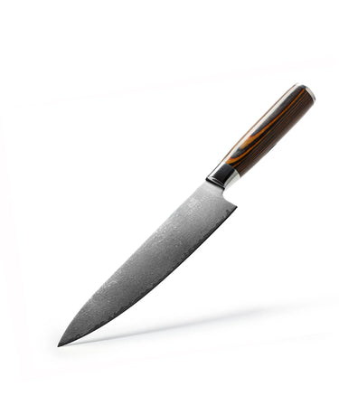 Ge matlagningen en professionell touch med denna 8-tums kockkniv smidd i 67-lagers damaskusstål med kärna av ett högpresterande stål som erbjuder exceptionell skärpa, lång livslängd och rostbeständighet.