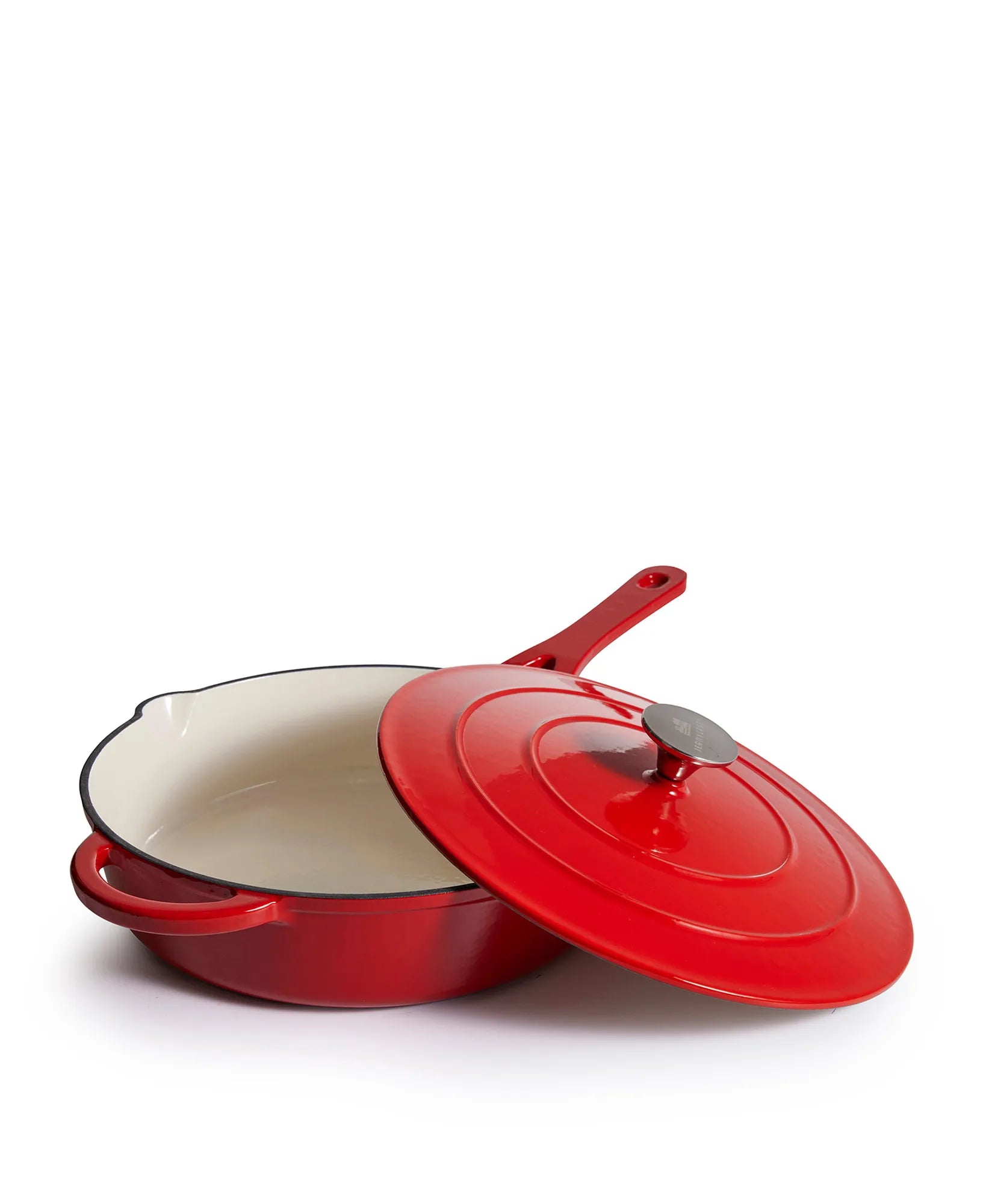 Pannan är tillverkad av högkvalitativt gjutjärn och täckt med en miljövänlig emalj, som inte bara skyddar pannan utan också är skonsam mot både dig och miljön. Emaljens hållbarhet säkerställer att din traktörpanna kommer att hålla i många år, samtidigt som den är enkel att rengöra och resistent mot fläckar och lukt. Insidan är belagd med en klassisk vit emalj, som ger en ren och tidlös look samt en lättskött yta att laga mat på. Locket är försett med en rostfri knopp som tål höga temperaturer och fulländar den eleganta designen.