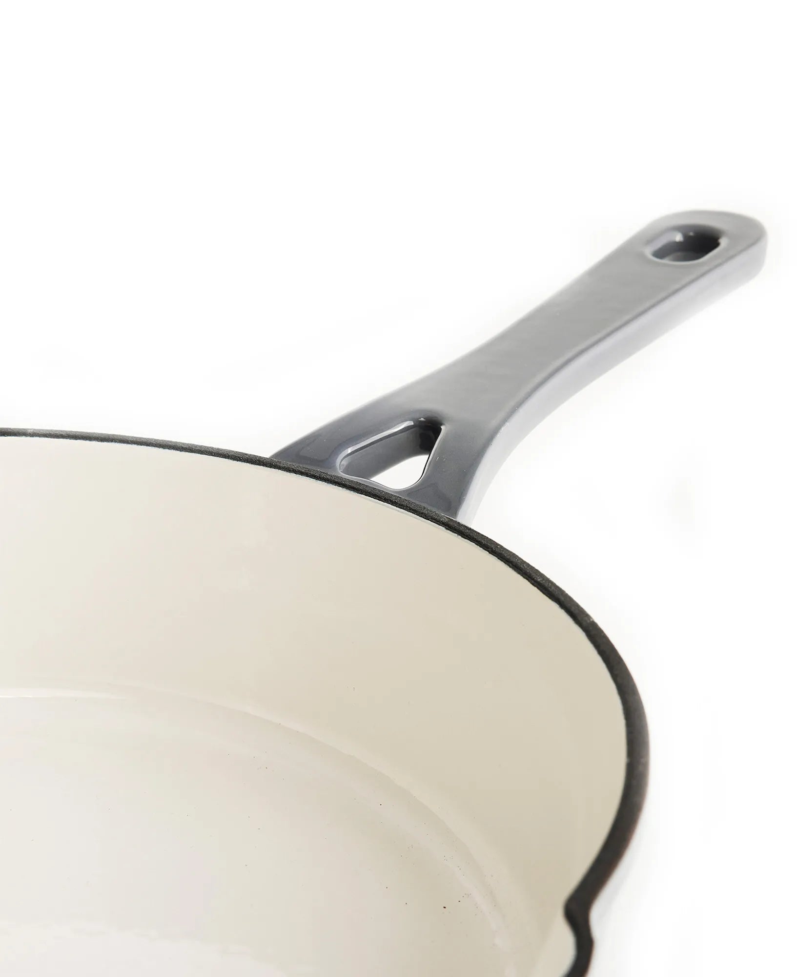 Denna panna har en generös diameter på 28 cm och en total längd på 48,25 cm, vilket ger dig gott om utrymme för att tillaga allt från snabba stekar till långsamma grytor. Med en vikt på 5,2 kg erbjuder den den stabilitet och värmefördelning som bara gjutjärn kan leverera.