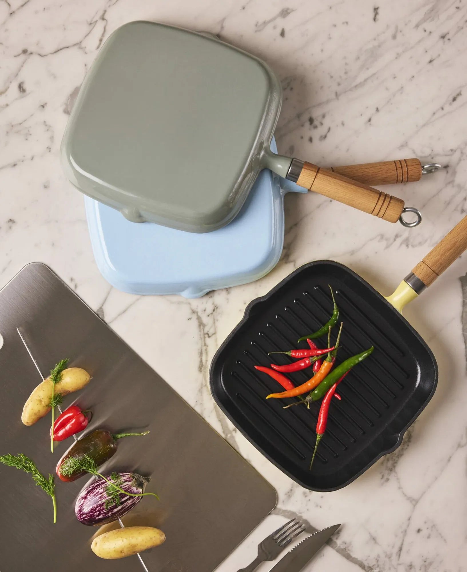 Grillpanna med trähandtag från Jernverket – Ljusblå