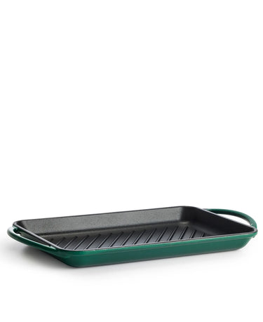 Med en storlek på 33x22 cm erbjuder den gott om plats för att grilla kött, fisk, grönsaker eller annat gott. Tillverkad i massivt gjutjärn med en emaljbelagd utsida som skyddar mot rost och slitage, samtidigt som den ger ett stilrent intryck.