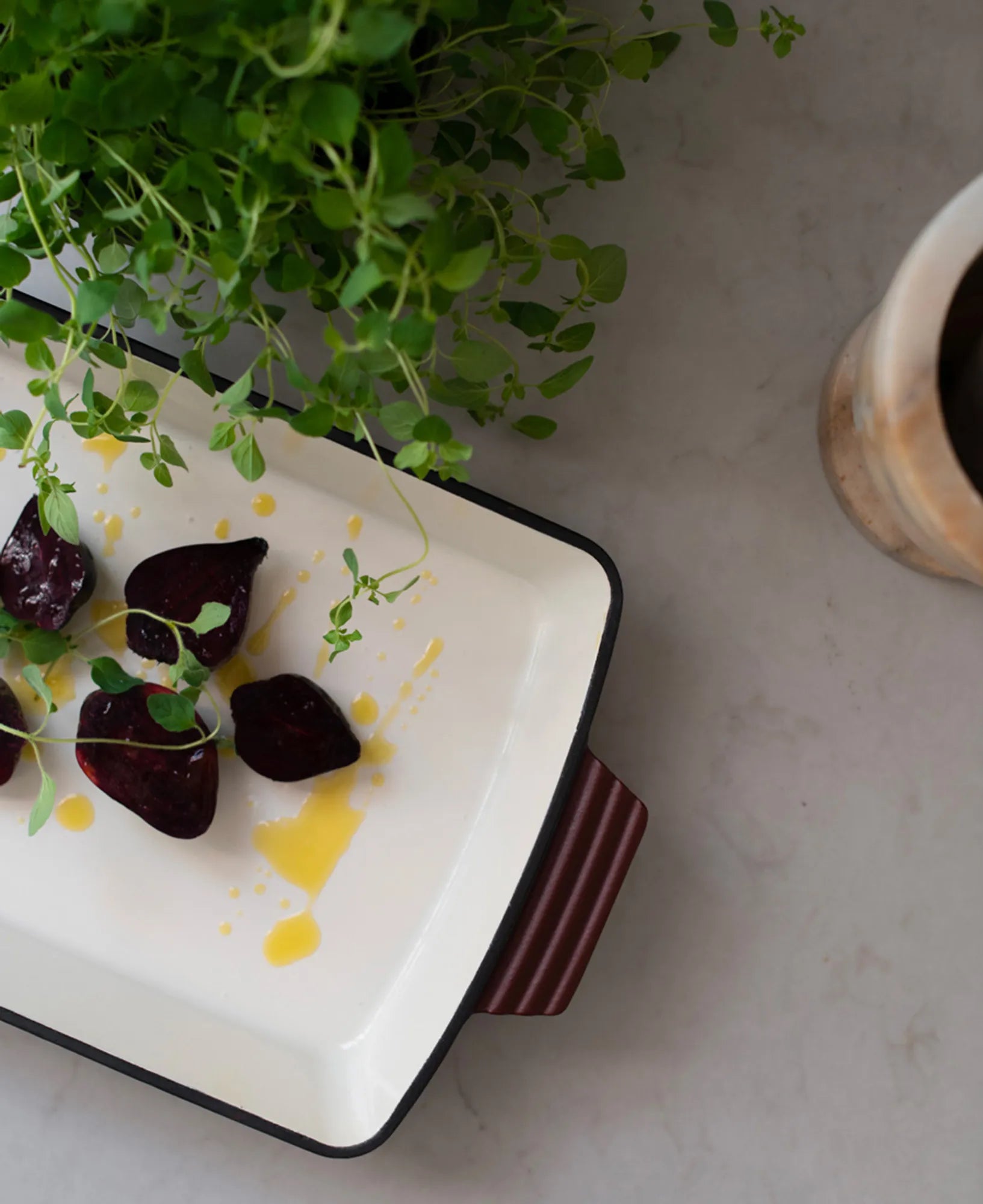 • Design och Hållbarhet: Den stilrena emaljerade ytan ger ett elegant intryck i köket och kan användas direkt på matbordet för servering. Gjutjärnets hållbarhet garanterar att formen kommer att vara en pålitlig del av ditt kök i många år framöver.