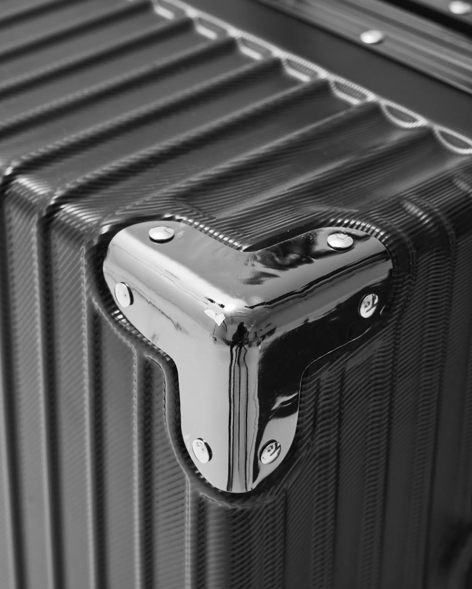 Väskan är tillverkad av en robust PC+ABS-blandning, vilket ger en lätt men slitstark konstruktion som tål resans påfrestningar samtidigt som den behåller sin stilrena look.