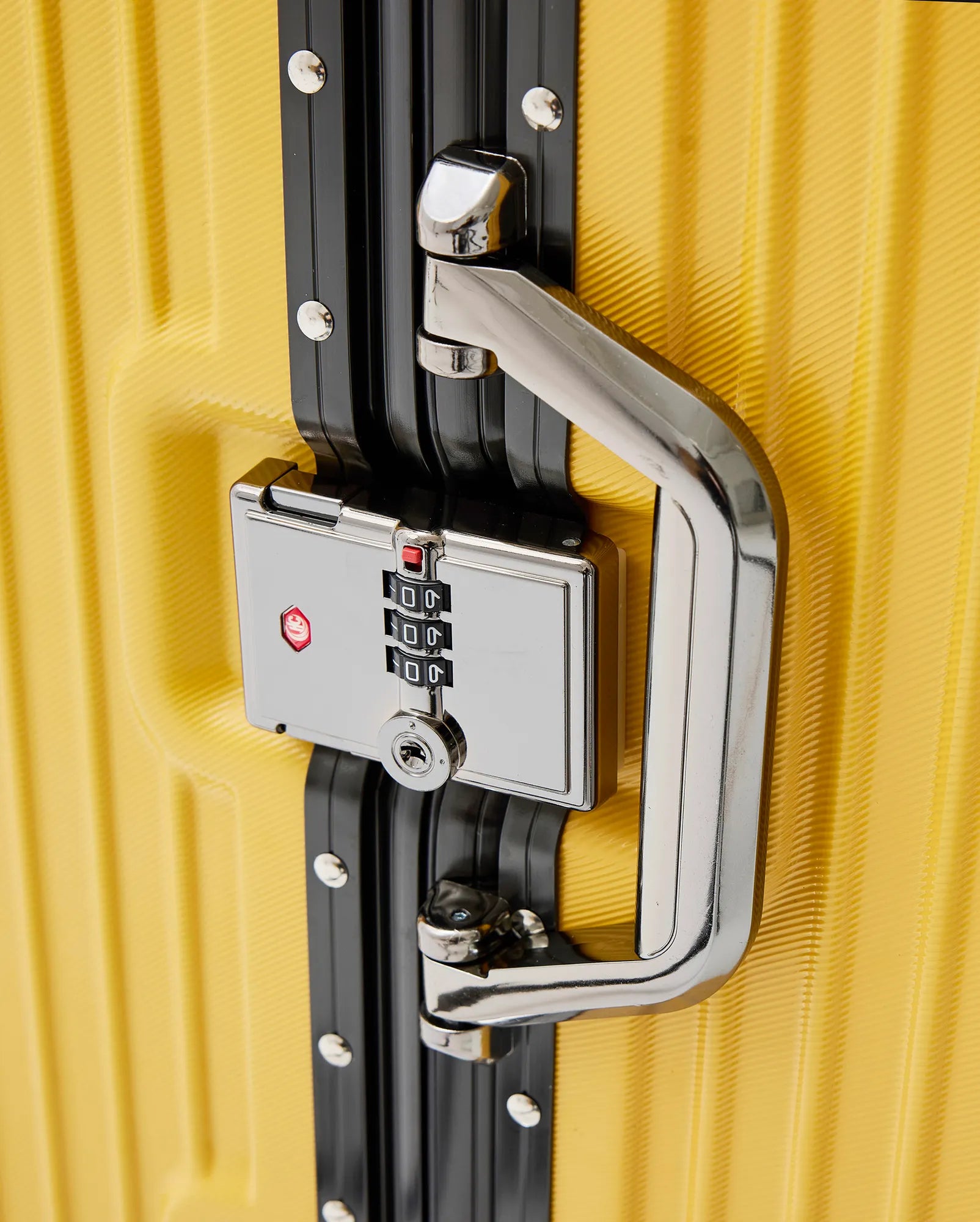 Väskan är tillverkad av en robust PC+ABS-blandning, vilket ger en lätt men slitstark konstruktion som tål resans påfrestningar samtidigt som den behåller sin stilrena look.