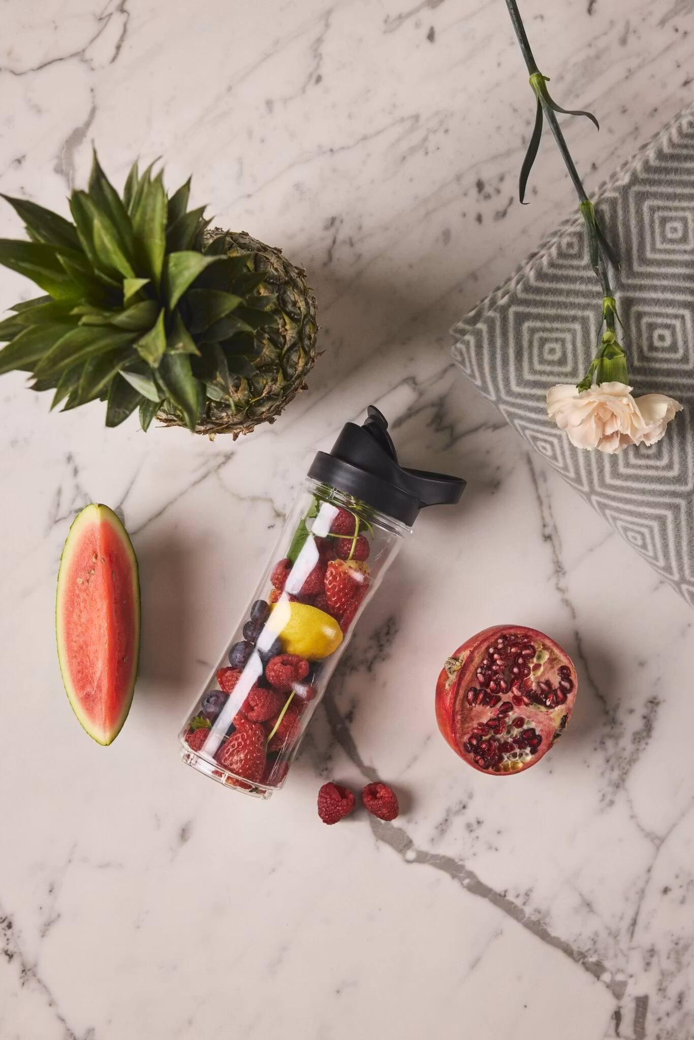 Med denna fantastiska produkt kan du enkelt blanda dina favoritbär med bara ett tryck på knappen. Flaskan är lätt att hålla i handen när du är på språng och tack vare dess anti-slip fötter så står den stadigt på alla ytor. Vi förstår att säkerhet är viktigt, så vår produkt har Multiple safe protection vilket innebär att mixern har flera säkerhetsfunktioner som hjälper till att skydda både användaren och själva mixern, samt ditt kök. Dessutom är flaskan tillverkad av hållbart material (PCTG) och är helt fri från BPA. Mått: 600ml