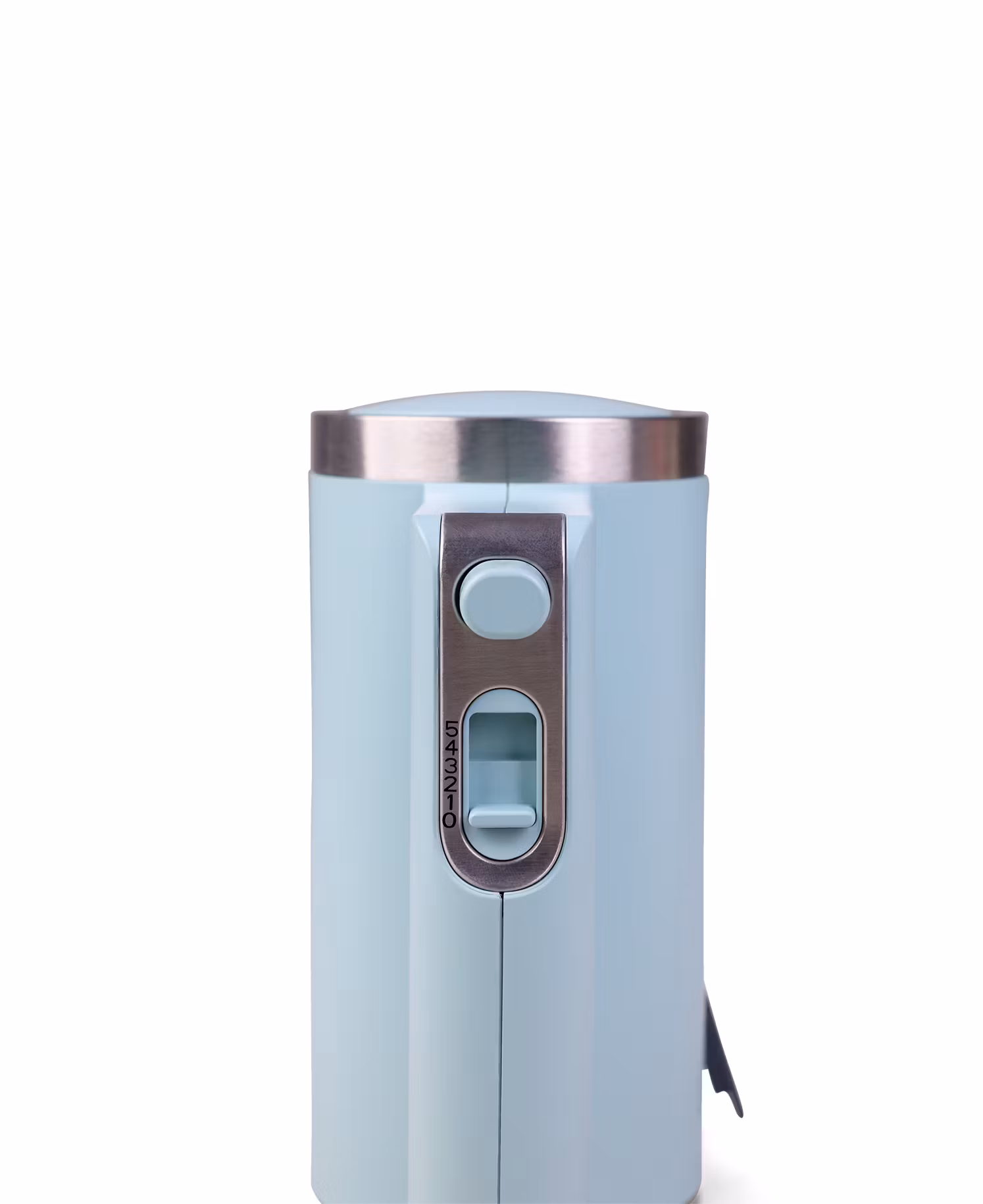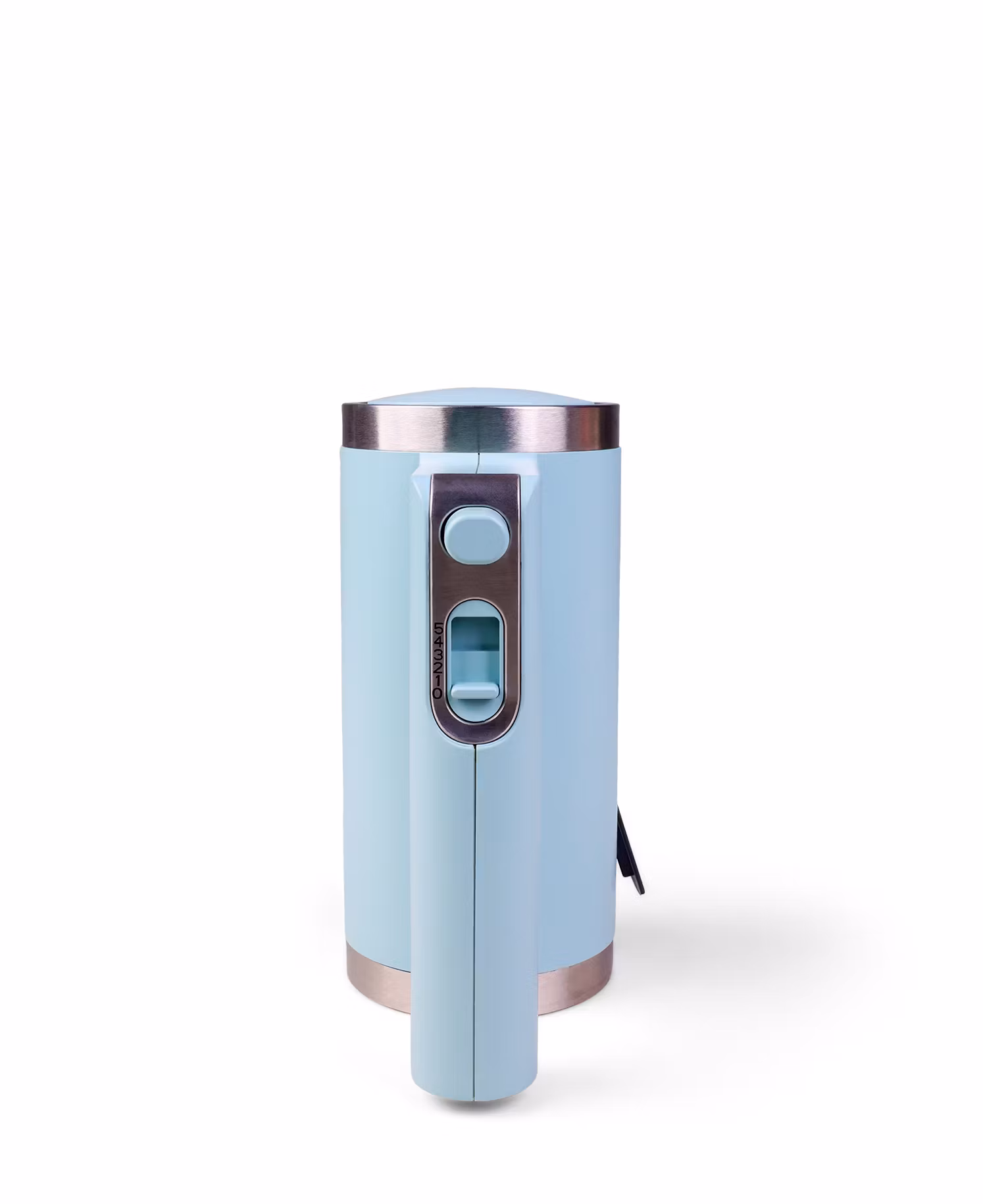 Den har 5 hastighetslägen som enkelt justeras med en glidknapp, och en vit LED-indikator visar tydligt batterinivån. Ytan är matt finish med borstade rostfria dekordetaljer, vilket ger både ett modernt och stilrent utseende.