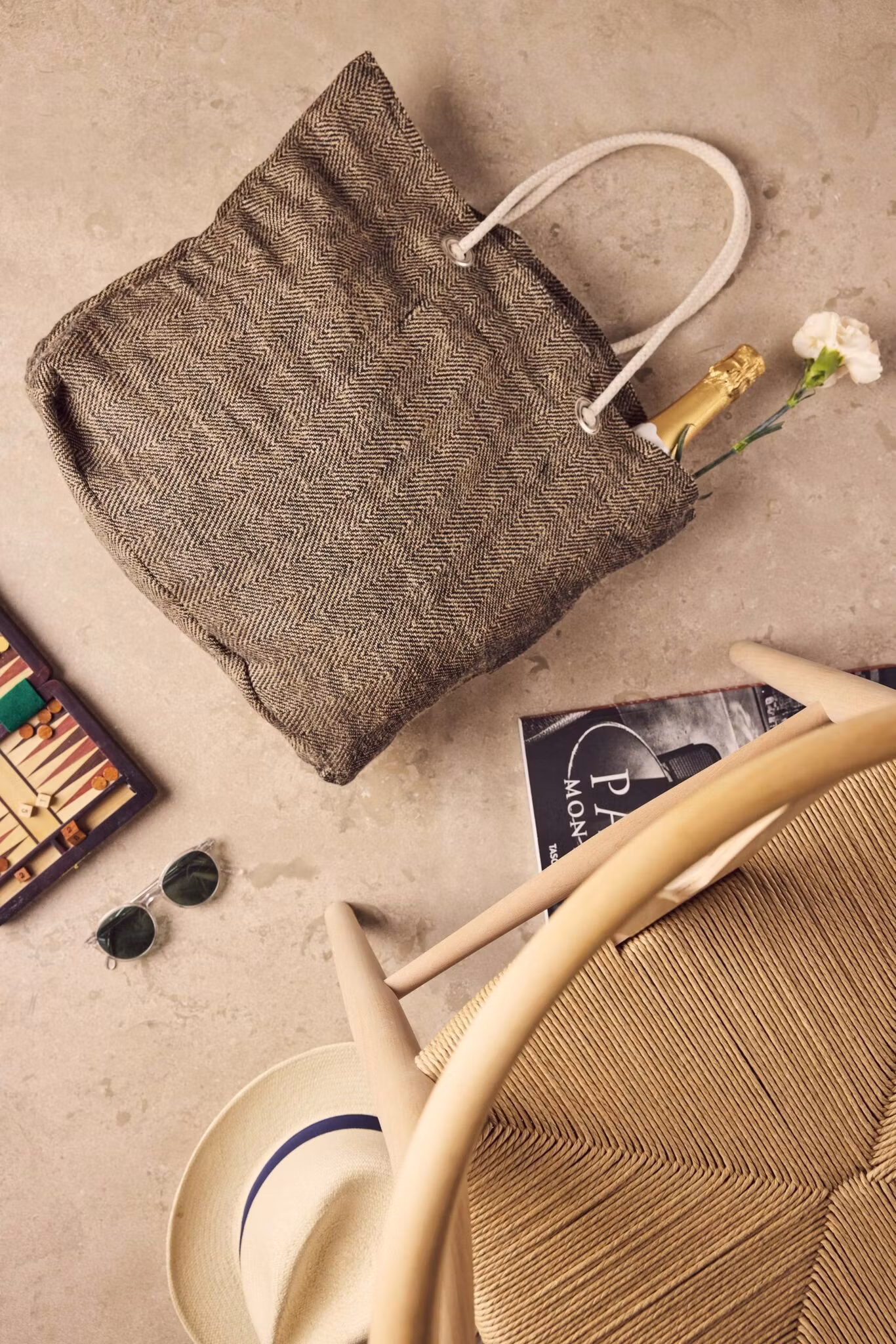 Den perfekta beachbagen i jutematerial där du får plats med det viktigaste som behövs för en dag på stranden. Höjd: 40 cm, bredd: 49 cm, djup: 13 cm.