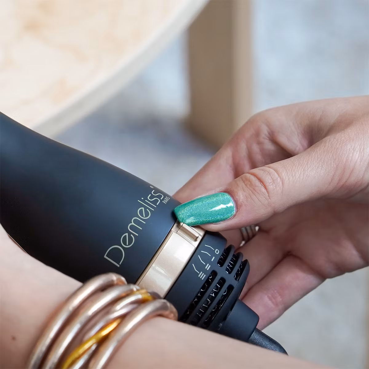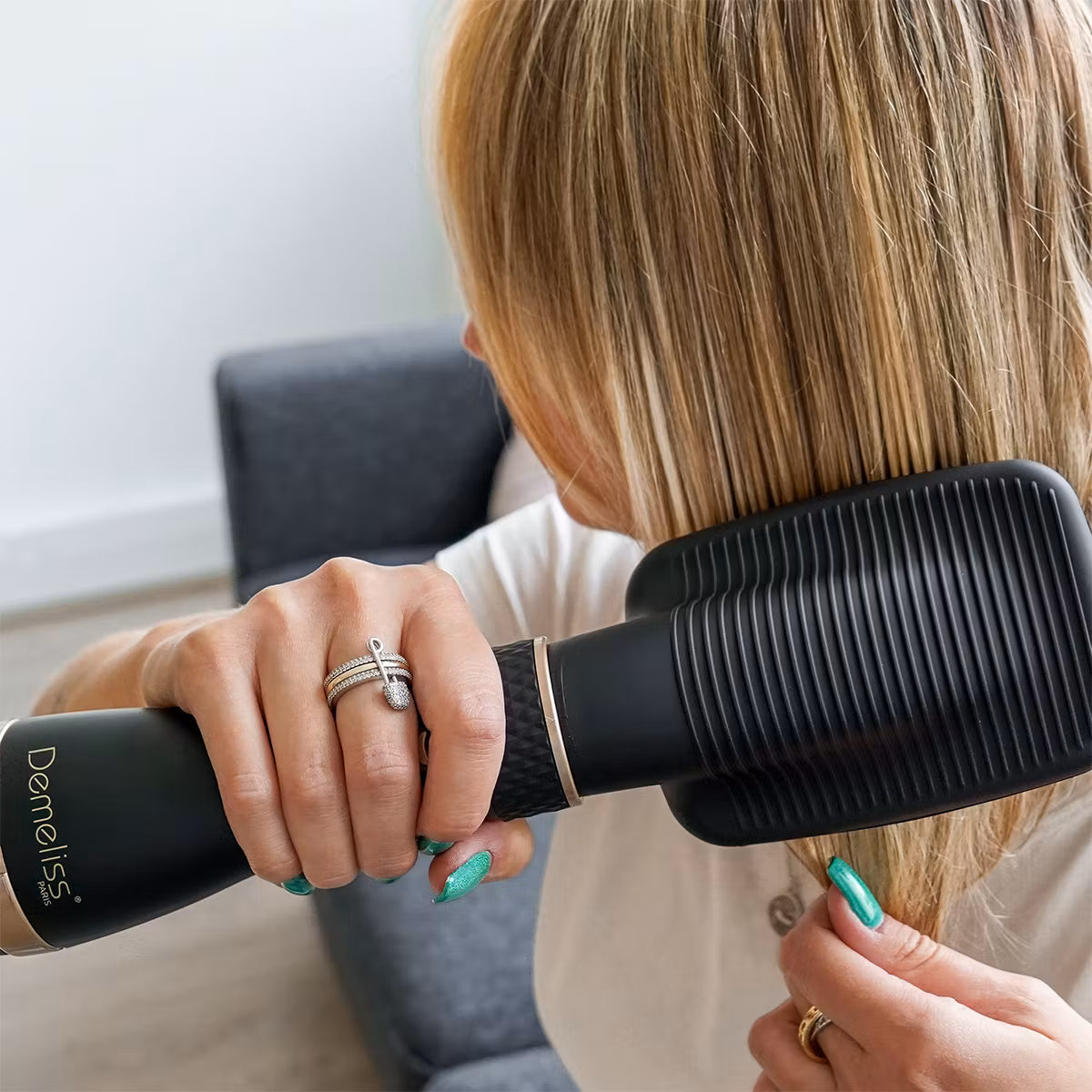 DEMELISS - VOLUME & STYLE den ultimata varmluftsborsten från SAINT ALGUE Salons. Föna, forma och platta med ett enda verktyg, vilket sparar tid och ger ett proffsigt resultat varje gång.