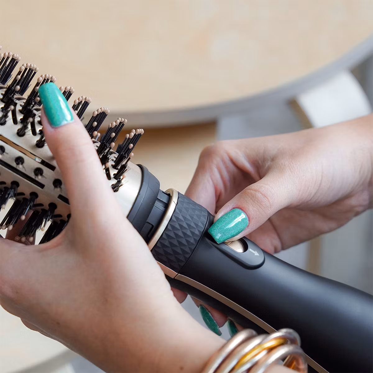 Volym och lyft: Den ovala borsten med borstspetsar skapar volym från rötterna för en fylligare look.